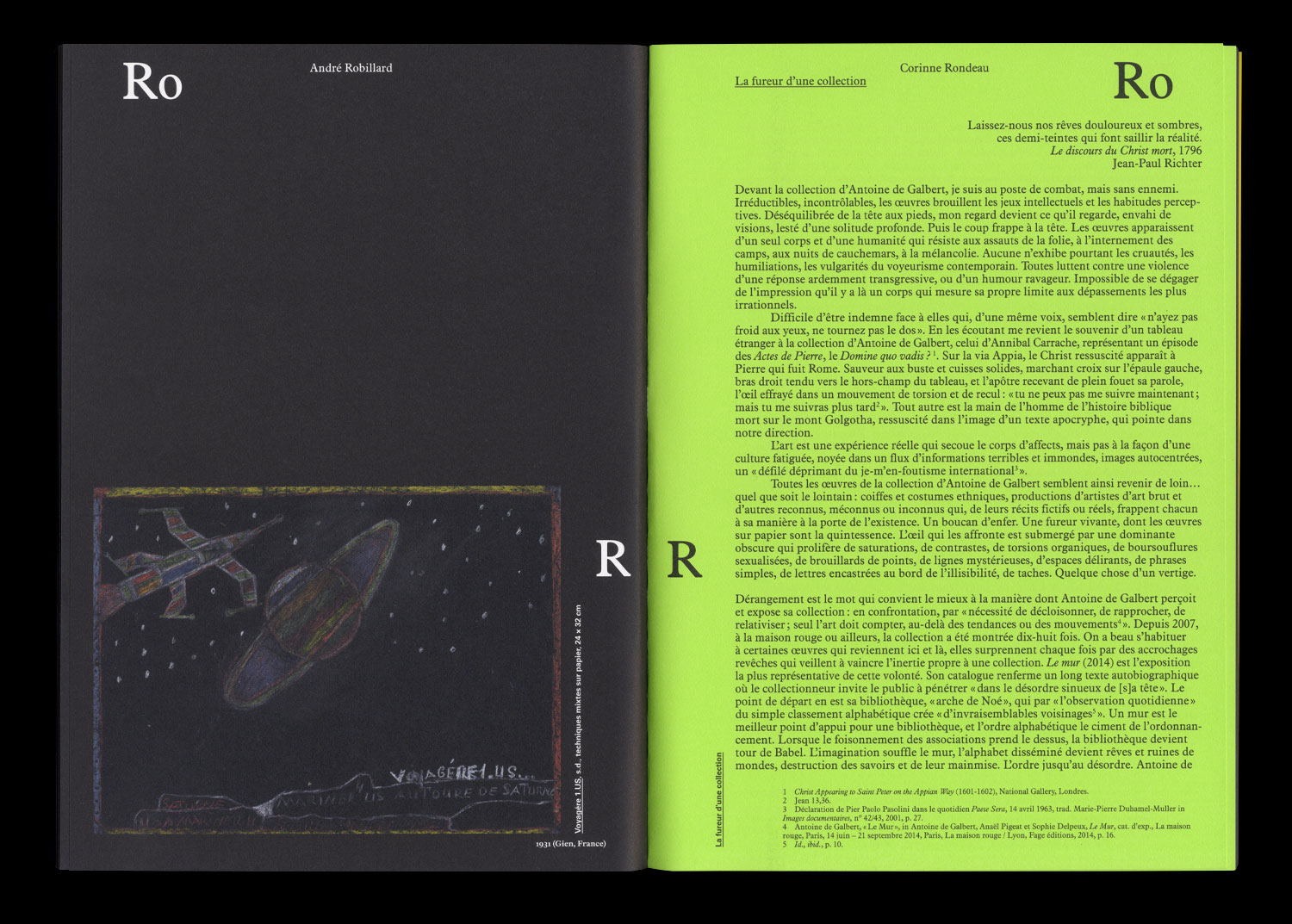« Une collection en forme de gouffre d’humanité qui tape fort, se tord, exulte, ’extasie, déconne, se répand, exagère, se contracte. Avec élégance, gaucherie, naïveté, virtuosité, les œuvres sur papier sont la vie qui veut continuer, qu’on en pleure ou qu’on en rie. Elles puent la vie qui travaille la mort à mort. »