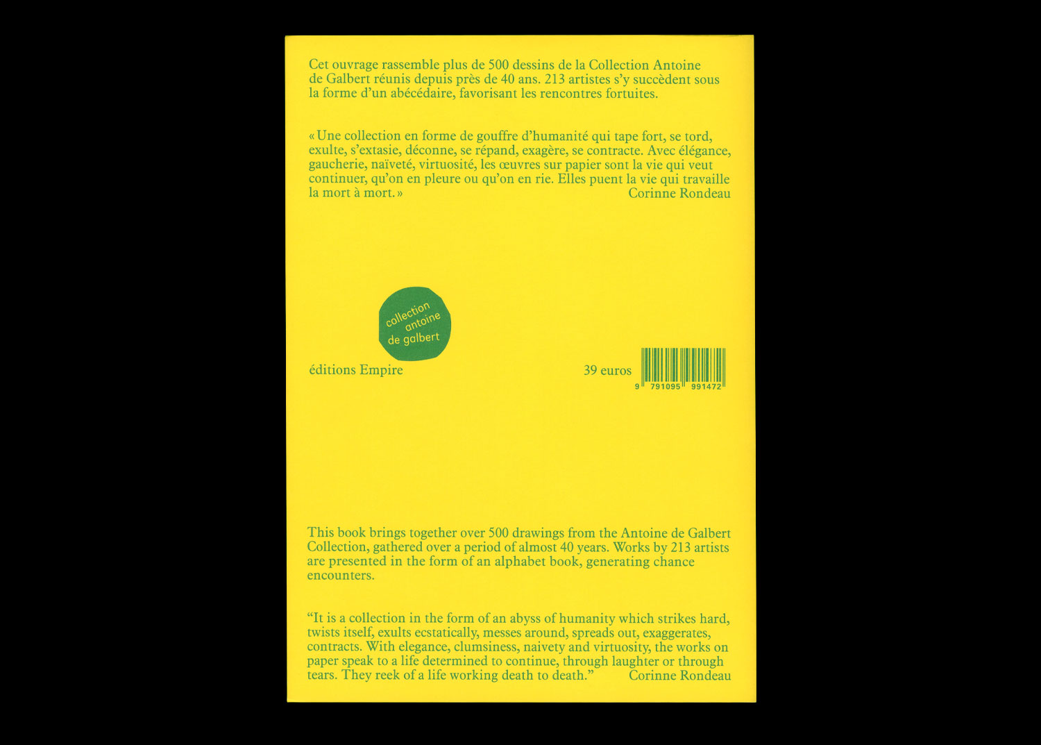 Cet ouvrage rassemble plus de 500 dessins de la Collection Antoine de Galbert réunis depuis près de 40 ans. 213 artistes s’y succèdent sous la forme d’un abécédaire, favorisant les rencontres fortuites.