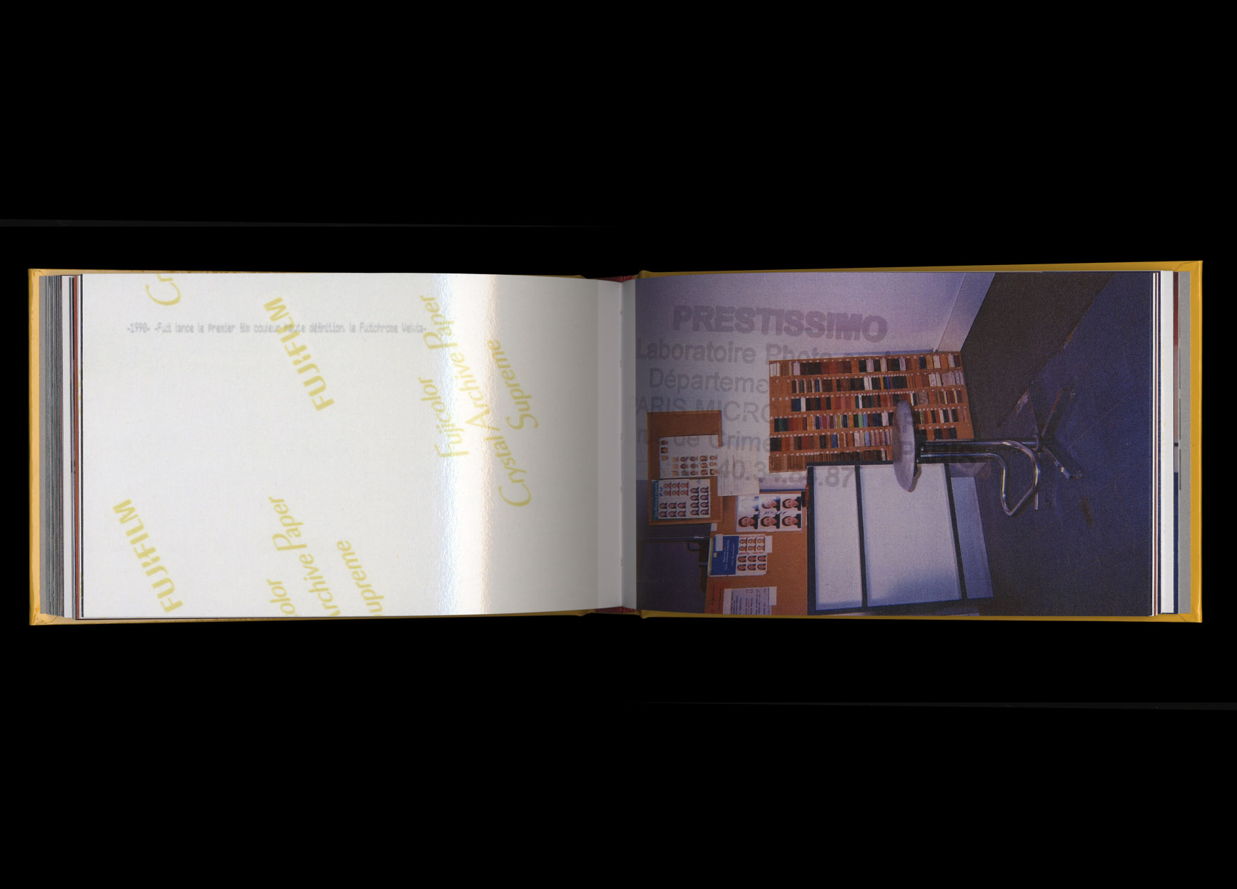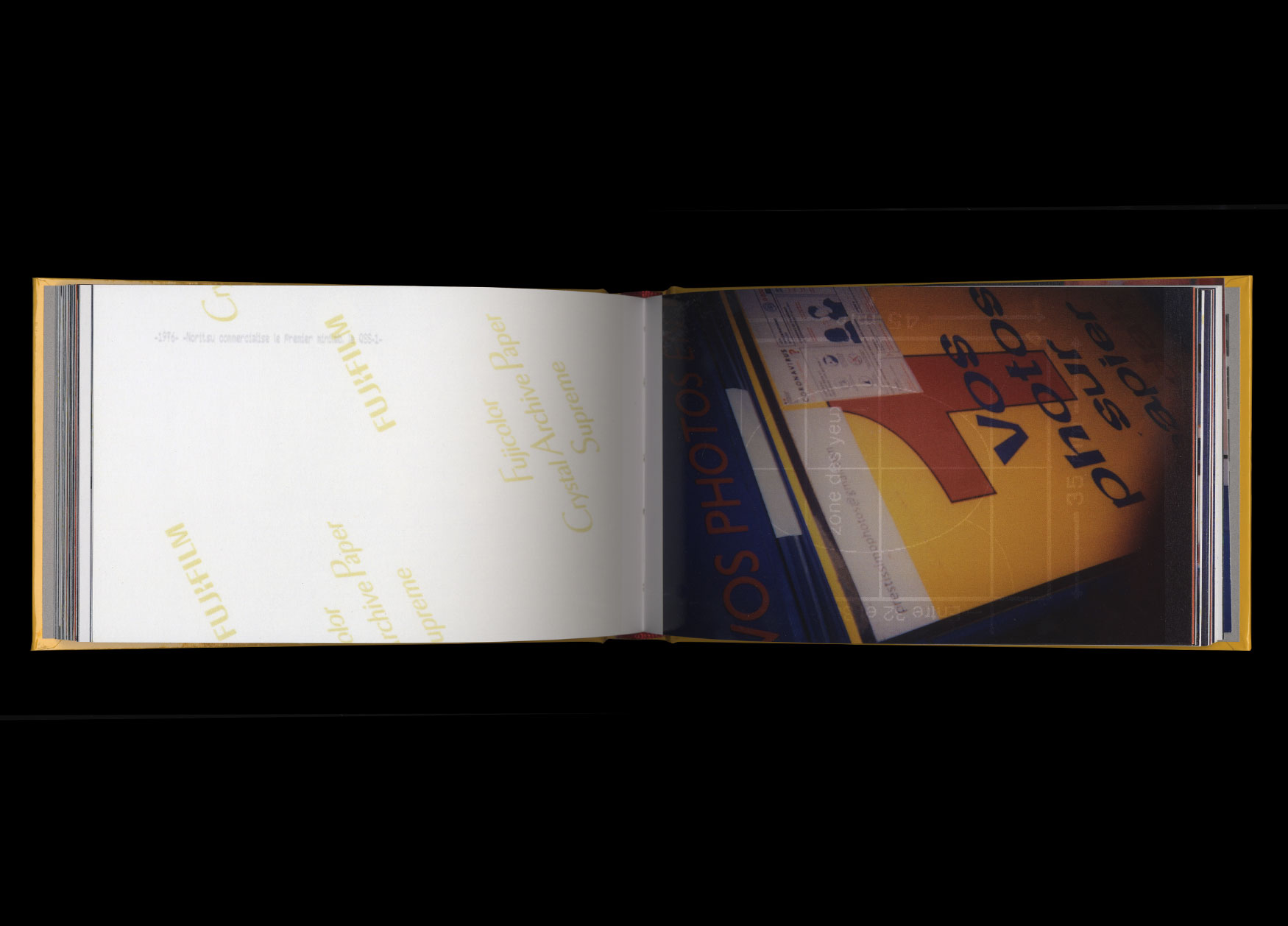 Avec deux appareils argentiques jetables achetés sur place, Aurélien Mole a pris trente minutes pour réaliser la documentation photographique d’un laboratoire photographique de quartier, vestige d’une époque en voie de disparition : celle de l’industrialisation et de la vulgarisation de la photographie argentique. Il n’aura pas fallu plus de temps pour que les deux films négatifs couleur de ce reportage photographique y soient développés et tirés et que ce petit texte de présentation soit rédigé. Un peu plus, par contre, pour que leur mise en page fantomatique soit dessinée par Syndicat.