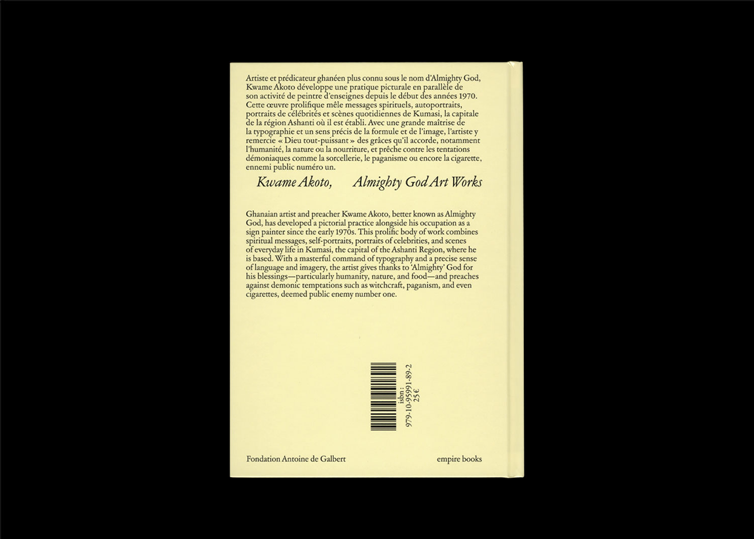 Cet ouvrage est publié à l’occasion de l’exposition Kwame Akoto. Almighty God Art Works, présentée à l’atelier Martine Aublet du musée du quai Branly – Jacques Chirac du 31 mars au 13 septembre 2026.
