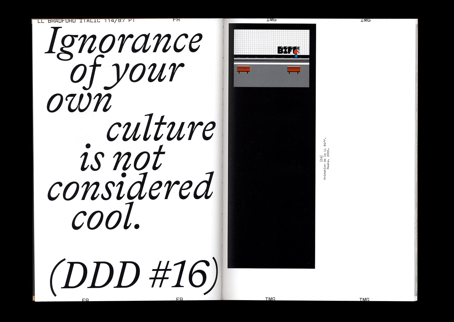 Le Specimen chez Lineto joue des formes et des formats pour promouvoir les caractères typographiques de la fonderie : livres, posters, enveloppes, dépliants, caractères transfert, annonces presses, clips vidéos mais aussi structures gonflables et bootlegs de logotypes. Lorsque Reala publie la LL Biff en 2000, le specimen utilise la culture graffiti et ses modes de mise en circulation, proposant une double référence : « Medium is the message »*, « Style is the message »**. La citation chez Lineto est une forme qui permet de diffuser le catalogue typographique en empruntant à divers champs culturels : « Ignorance of your own culture is not considered cool ! »***