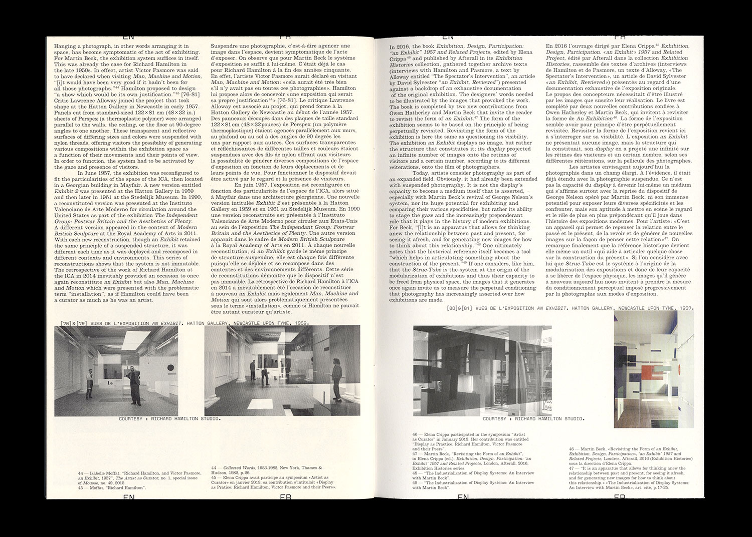 La tendance consistant à spatialiser la photographie, et plus spécifiquement la photographie documentaire, s’affirme clairement en 1951 à travers les expositions : The new landscape de György Kepes au Massachusetts Institute of Technology, Architettura, misura dell’uomo (IX Triennale de Milan) d’Ernesto N. Rogers, Vittorio Gregotti et Giotto Stoppino, et en 1953 Parallel of Life en Art à l’Institute of Contemporary Art (ICA) de Londres. Les documentations de ces trois «display» jouent un rôle essentiel sur l’évolution des modes de monstration de la photographie. Elles viennent, comme celles des expositions du MoMA mises en espace par Herbert Bayer, Road to Victory et Airway to Peace, alimenter la réflexion qui se développe magistralement dans l’ouvrage Display de Georges Nelson, publié en 1956.