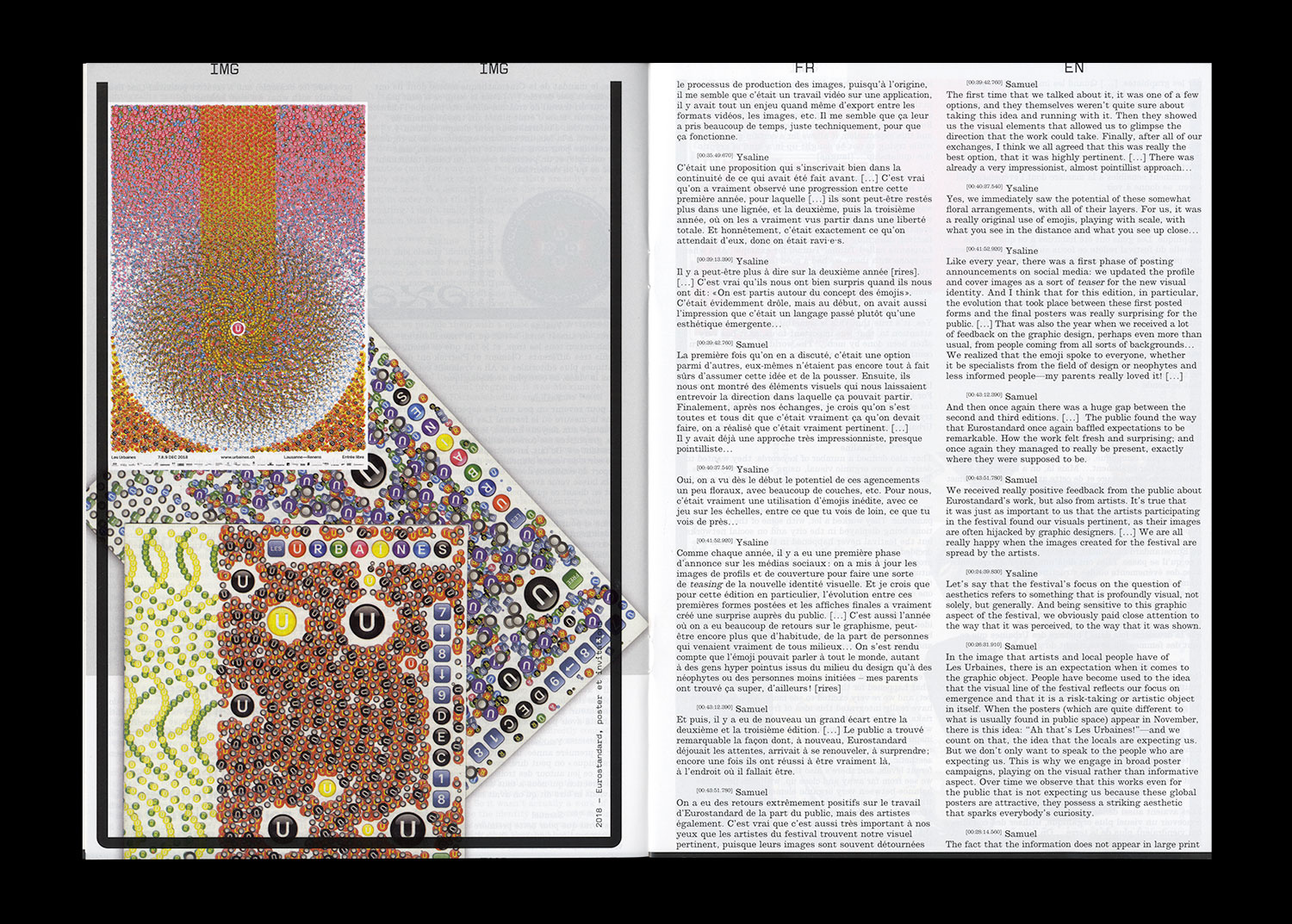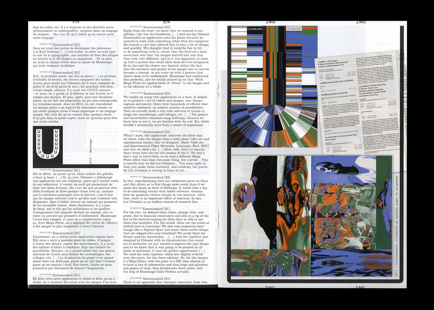 Depuis son ouverture en 1996, le festival interdisciplinaire lausannois Les Urbaines a collaboré avec de nombreux graphistes suisses. Après, entre autres, Guillaume Chuard & Renato Zülli (2011), Maximage (2012-2015) et Daniel Hättenschwiller & Thomas Petit (2016), c’est Eurostandard qui travaille à l’identité de trois éditions entre 2017 et 2019. Pour constituer ce triptyque pensé comme un tout, le studio propose d’explorer pour chacune une nouvelle technique destinée à l’origine à produire des selfies déformés. D’une part, l’usage de ce procédé leur permet de questionner les modes d’auto-représentation et donc de produire un discours profondément ancré dans son époque. De l’autre, cela leur permet de générer des visuels singuliers et d’inscrire indéniablement leur identité en trois volets dans la lignée des précédentes. Ce numéro de la revue sera l’occasion de revenir, à travers la voix des graphistes et surtout des commanditaires, sur ces trois années de collaboration et plus largement sur les différentes identités de ce festival, qui semblent à elles-seules dessiner un certain paysage du graphisme suisse.