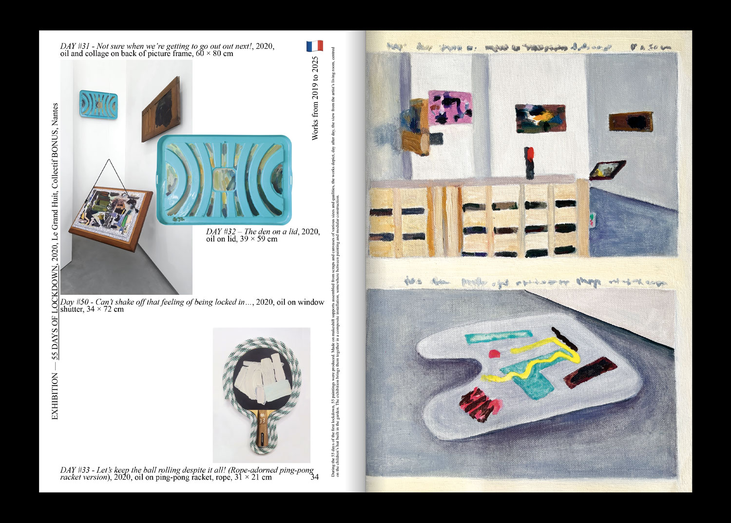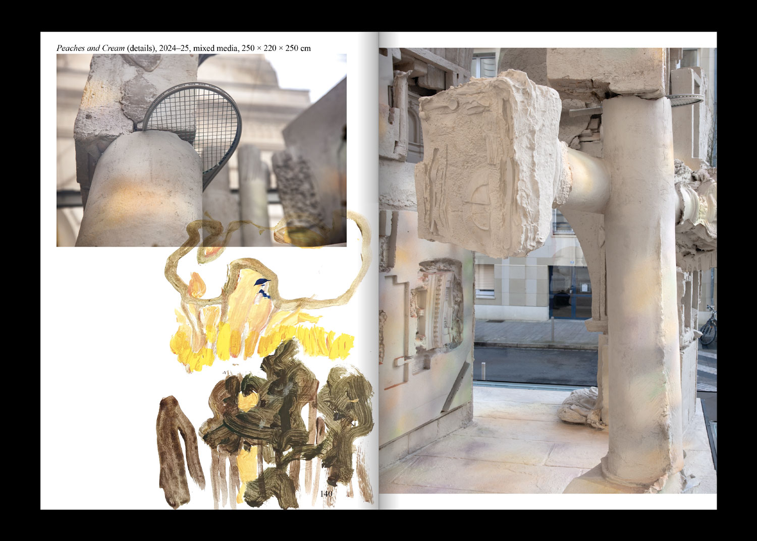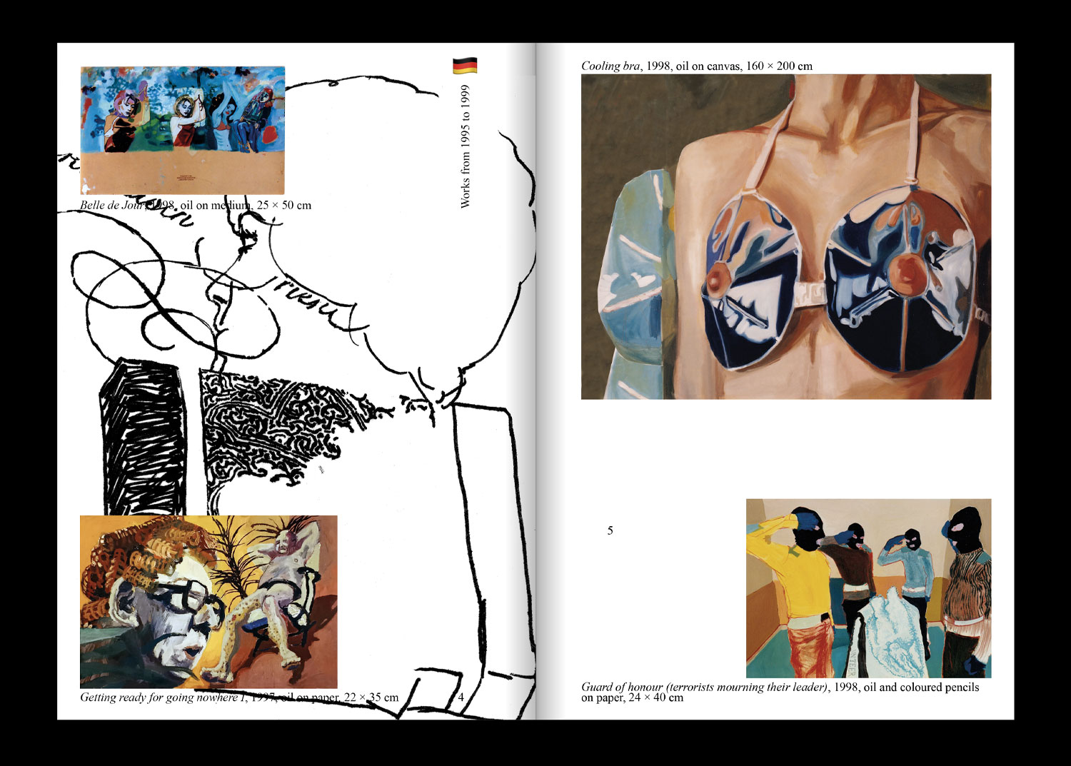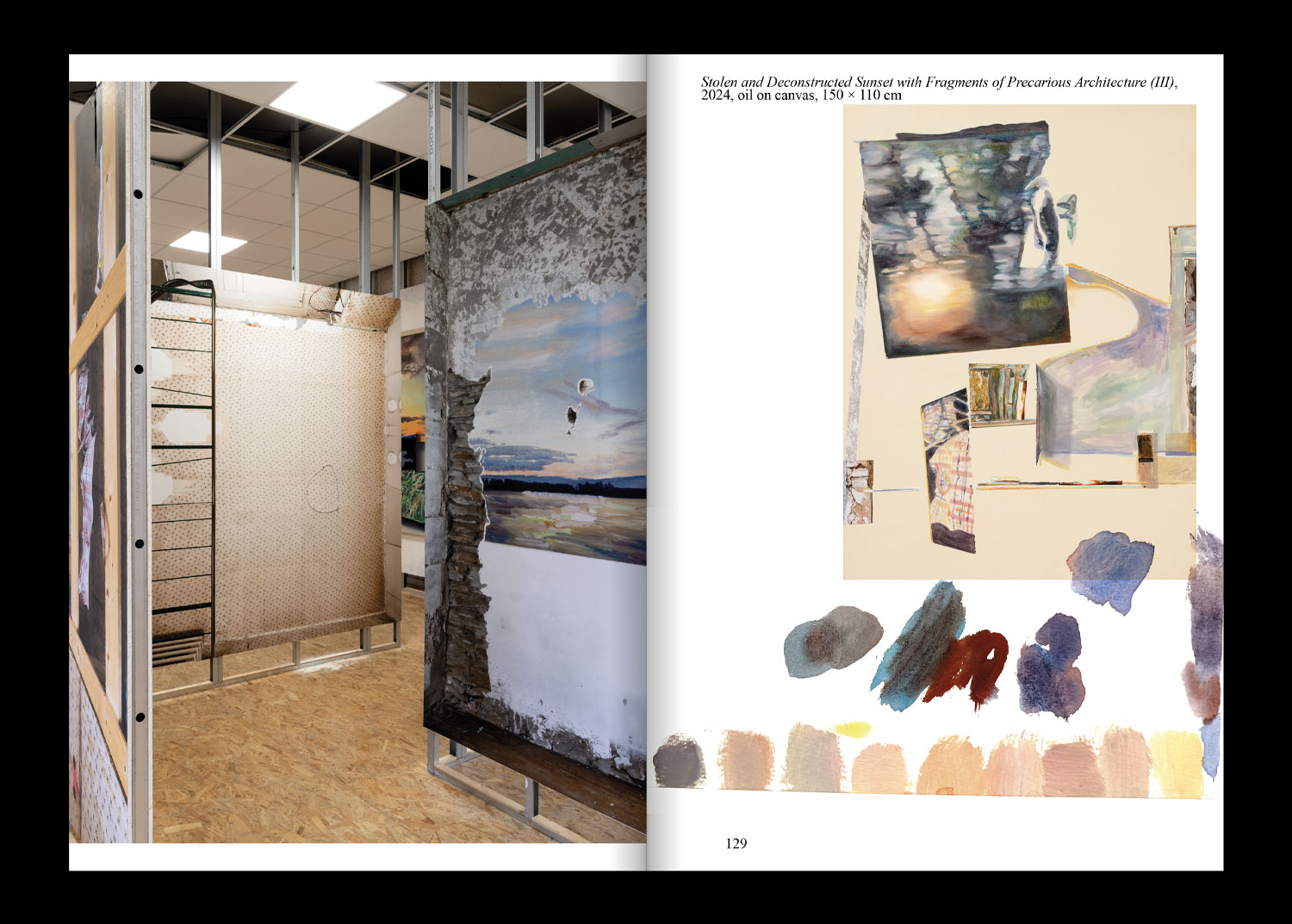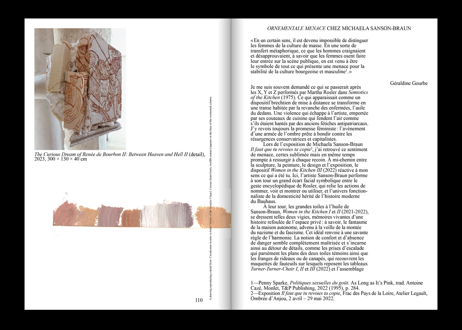 Cette première monographie retrace trente années de pratique en Allemagne, à Londres et en France. Elle réunit reproductions, vues d’expositions et essais, et présente également seize peintures spécialement conçues pour l’occasion, imprimées sur un papier offset. Telles des poupées russes, elles créent une mise en abyme de la fabrication du livre, brouillant la frontière entre documentation et œuvre.