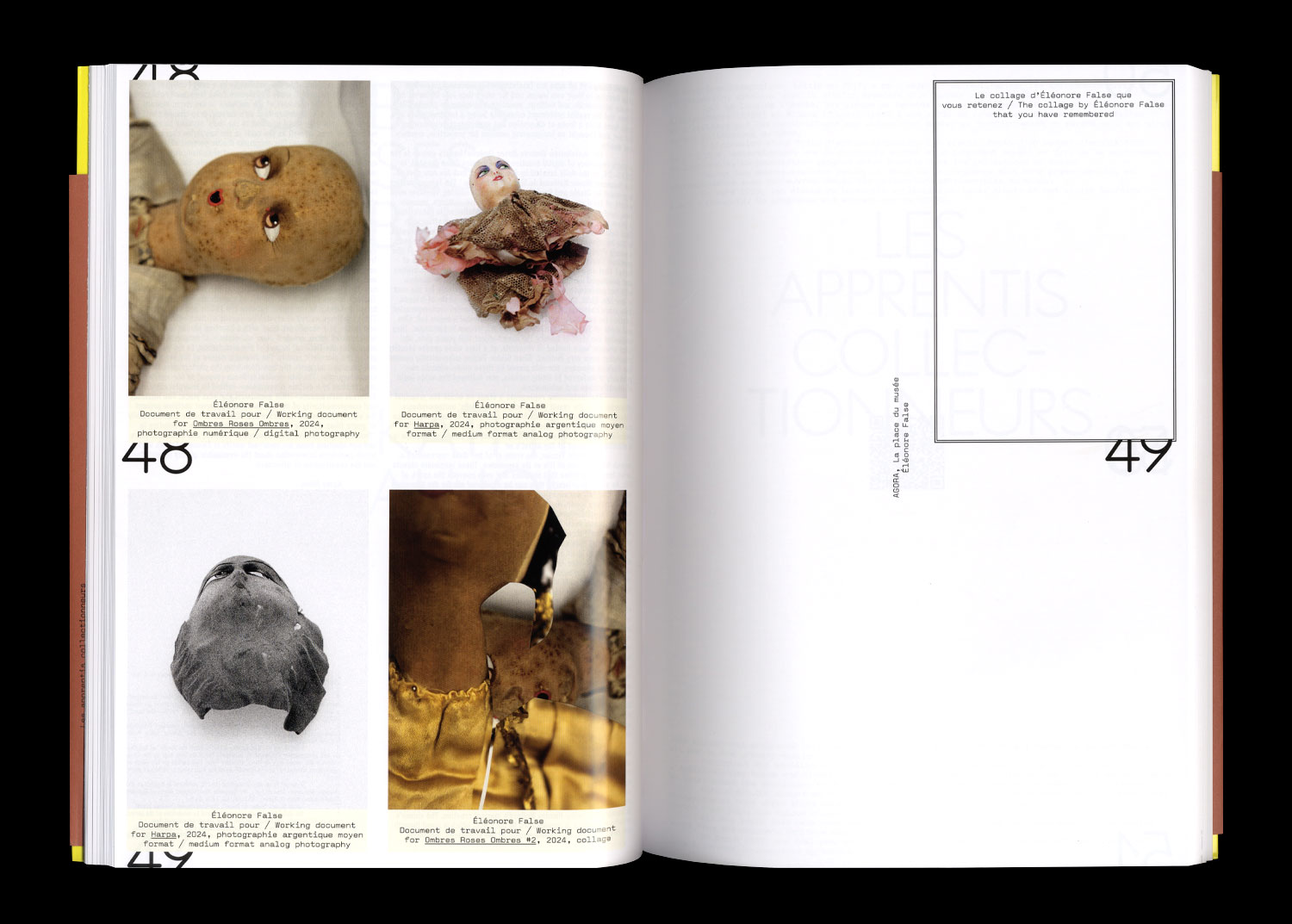 Taking as a starting point questions that guided the conception of this publication, we have preferred to allow its readers to make their own contributions to different chapters, so that they can personalise them to suit their personal sensibility and outlook, and to correspond to their relationship with the book as an object, and with the format of a museum exhibition or art collection.