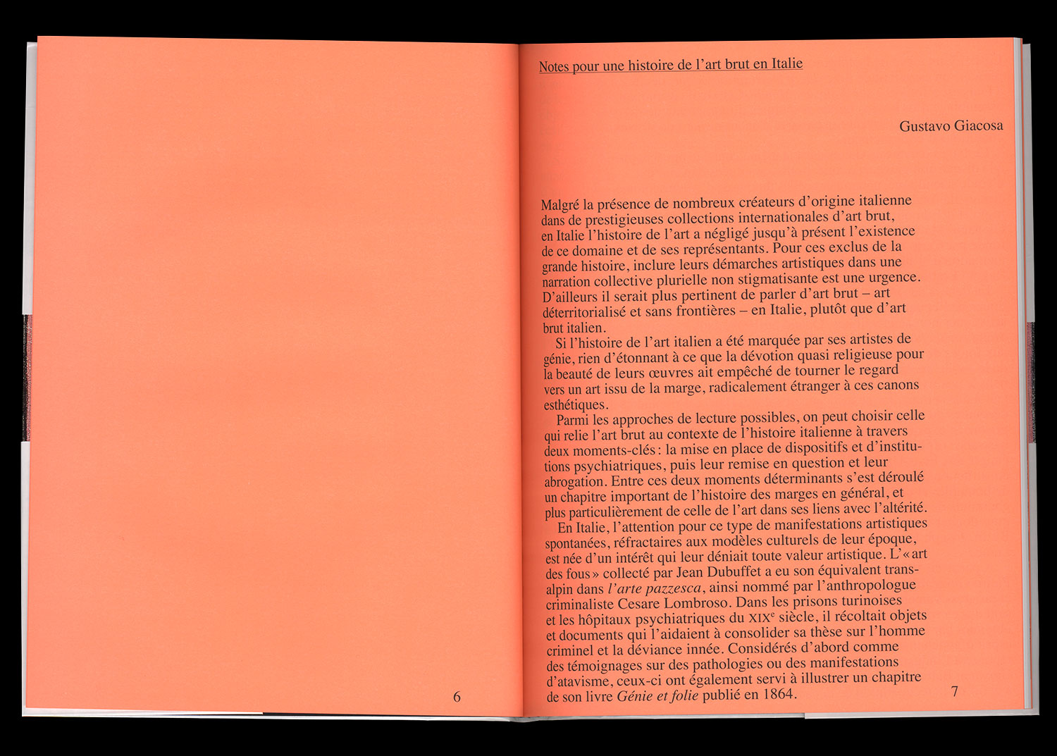 Featuring A.C.M., Noviadi Angkasapura, Anselme Boix-Vives, Marie Bodson, Giovanni Bosco, Gustavo Enrique Buongermini, Aloïse Corbaz, Fleury-Joseph Crépin, Egidio Cuniberti, Henry Darger, Fernand Desmoulin, Janko Domsic, Dong-Hyun Kim, Jaime Fernandes, Eugen Gabritschevsky, Pietro Ghizzardi, Madge Gill, Paul Goesch, Jorge Alberto Hernández Cadi, Paul Humphrey, Zdeněk Košek, Joseph Lambert, Gustave Pierre Marie Le Goarant de Tromelin, Augustin Lesage, Pascal Leyder, Alexander Pavlovitch Lobanov, Ramon Losa, Dwight Mackintosh, Lázaro Antonio Martínez Durán, Mettraux, Edmund Monsiel, John Bunion Murray, Iwona Mysera, Koji Nishioka, Masao Obata, Jean Perdrizet, M. Pierron, Photographies Spirites, Miloslava Ratzingerová, Marco Raugel, Achilles G. Rizzoli, Leopold Strobl, Harald Stoffers, Mose Tolliver, Melvin Way, Scottie Wilson, Adolf Wölfli, Anna Zemánková, Carlo Zinelli, Unica Zürn.