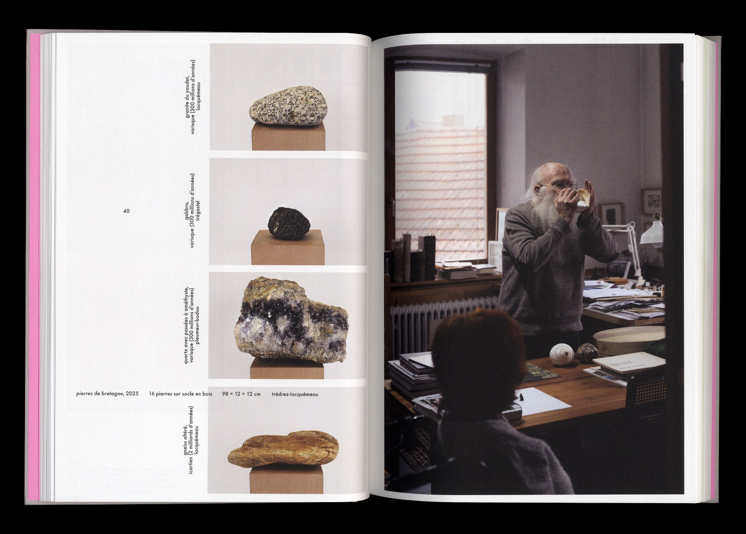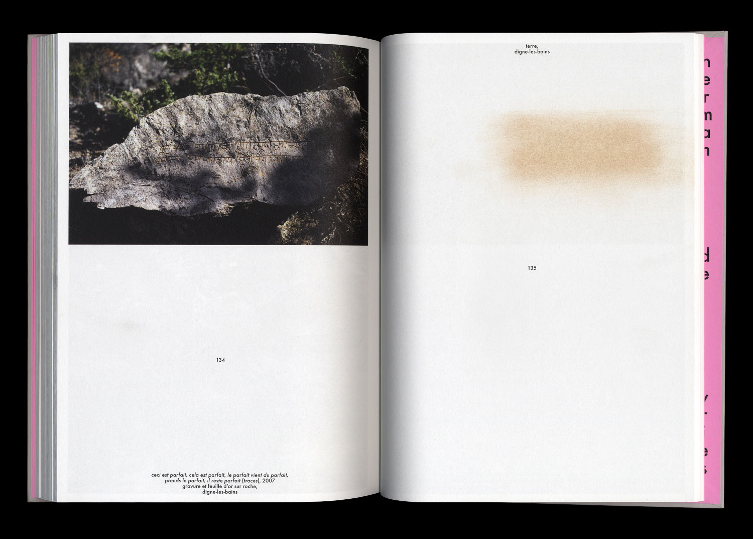 through a selection of exhibition views, documents of in-situ interventions and photographs of the artist in his studios and places of work, this book operates as a succession of visual and geographical wanderings, between exterior and interior, between context and detail, between the world and the work.
