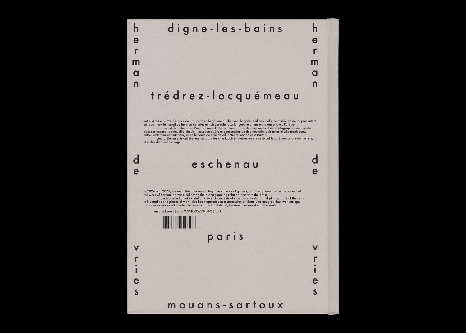 in 2024 and 2025, the eac., the dourven gallery, the aline vidal gallery, and the gassendi museum presented the work of herman de vries, reflecting their long-standing relationships with the artist.