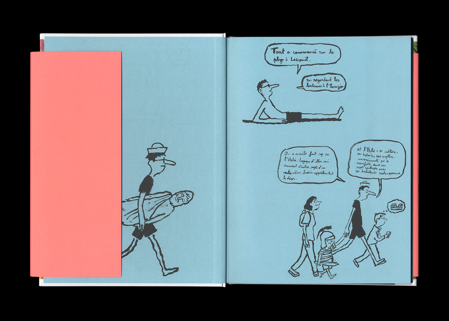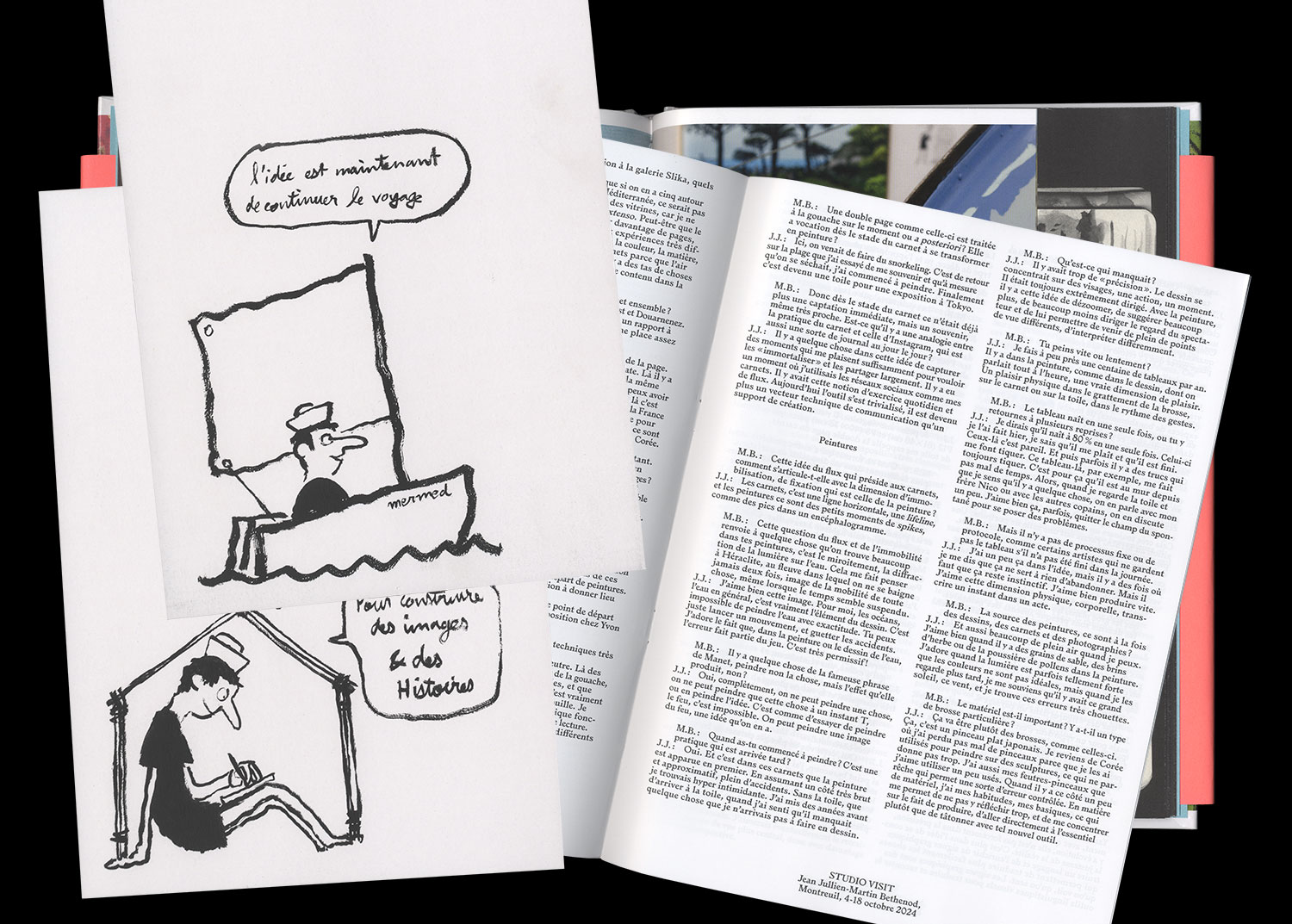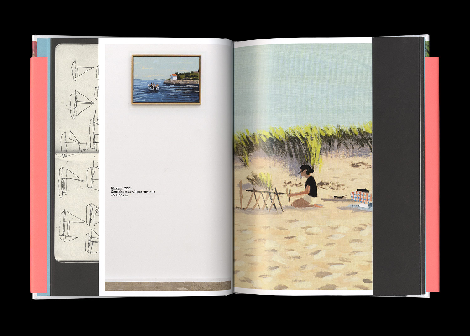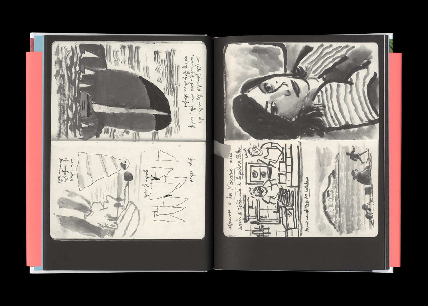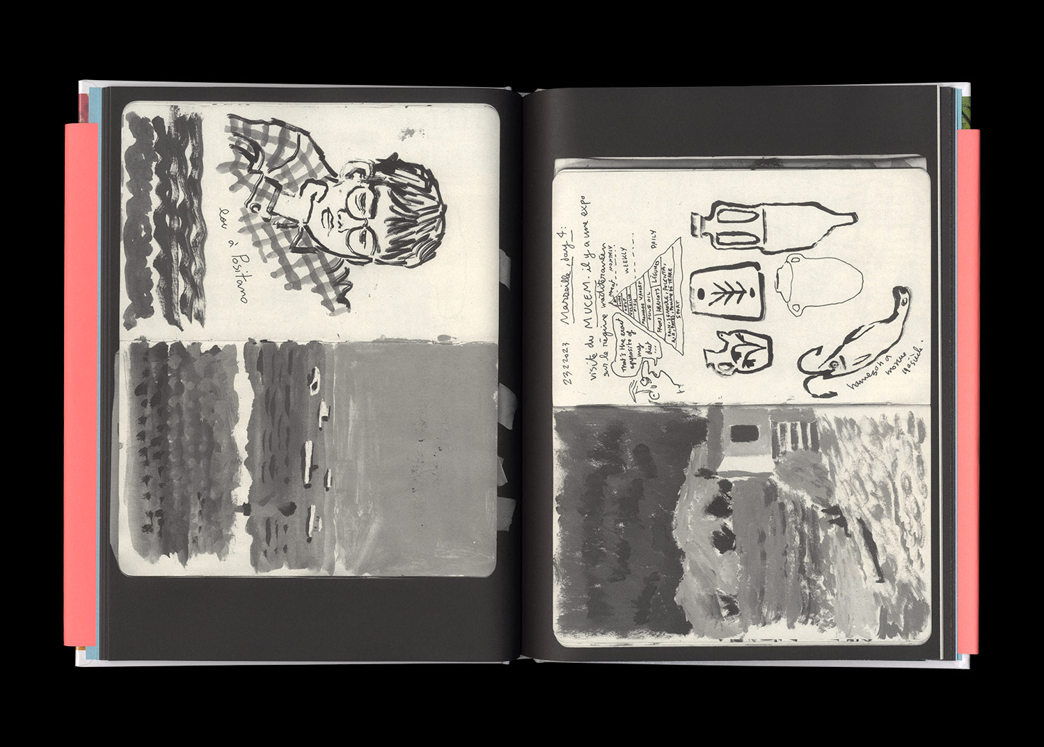 Moving between reproductions of sketchbook pages and paintings, we travel through the pages of the book in the company of the artist and his interpretations of the worlds he discovers, contemplates or dreams up.