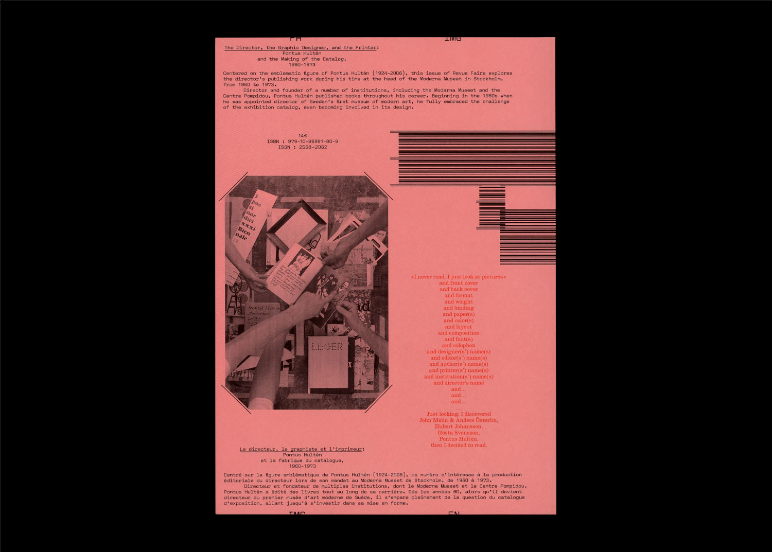 Centered on the emblematic figure of Pontus Hultén (1924–2006), this issue of Revue Faire explores the director’s publishing work during his time at the head of the Moderna Museet in Stockholm, from 1960 to 1973.