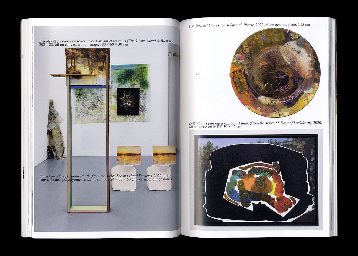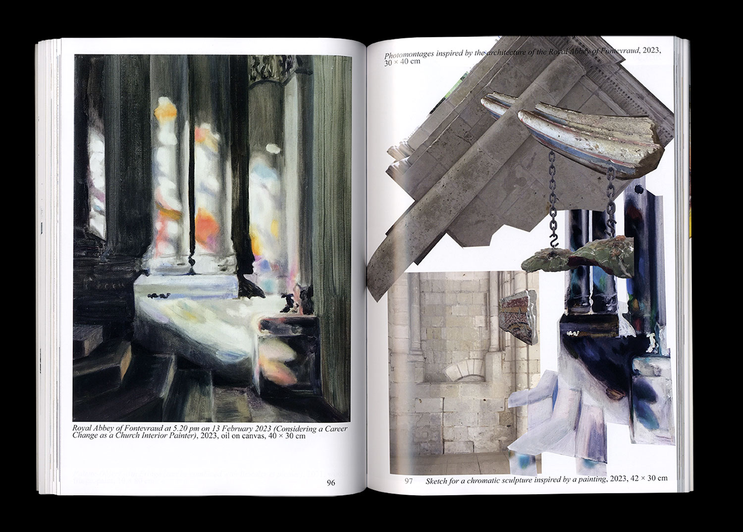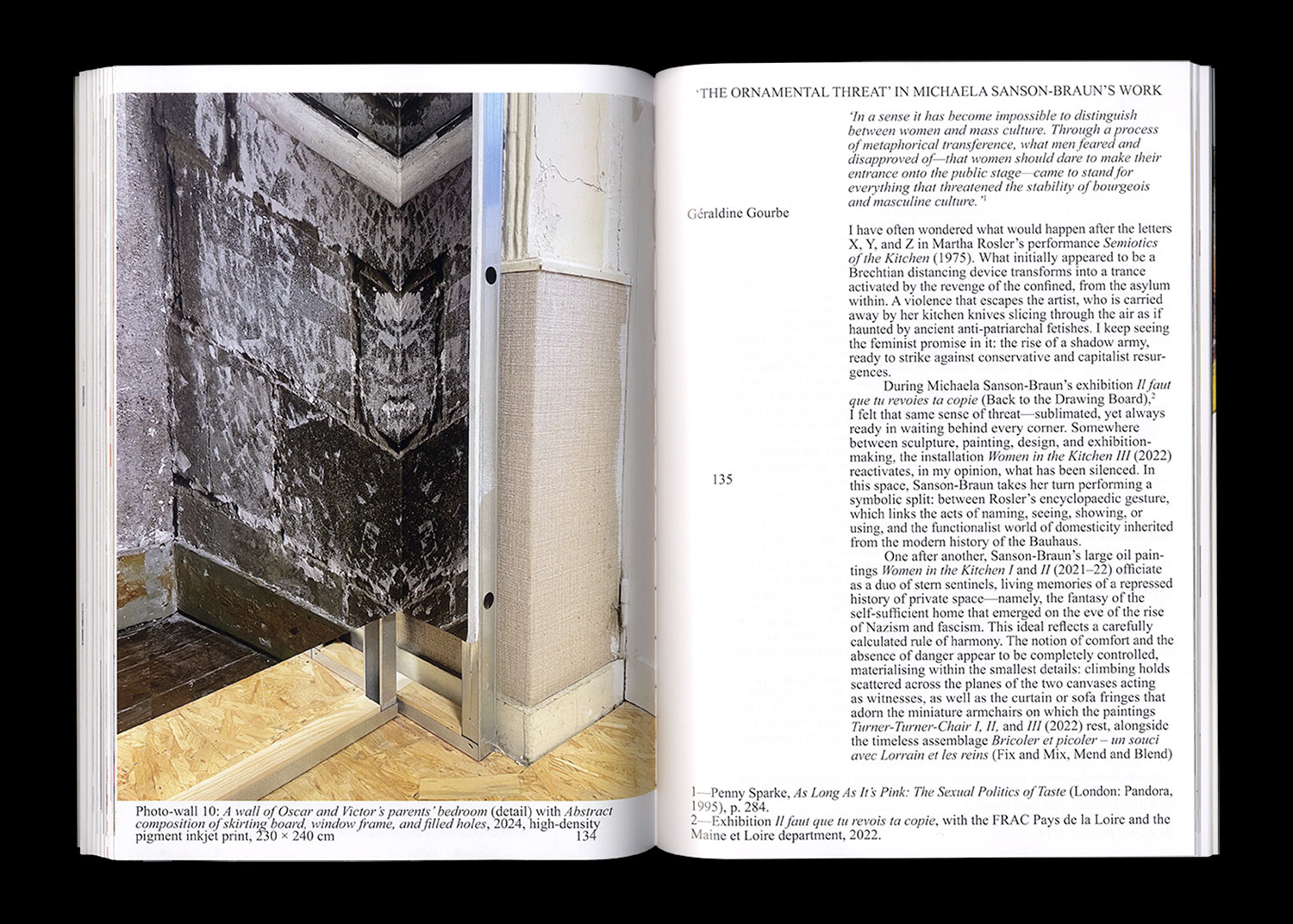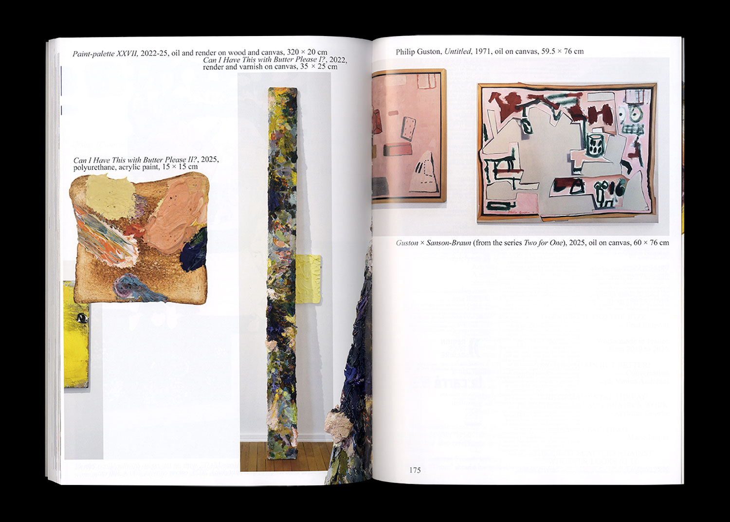 This book, the first dedicated to the work of Michaela Sanson-Braun, traces thirty years of practice across Germany, London, and France. Bringing together paintings, drawings, collages, sculptures and installations, it also features sixteen paintings conceived especially for this publication and printed on uncoated paper. Like a Russian doll, they create a mise en abyme of the book’s own making, blurring the line between documentation and artwork.