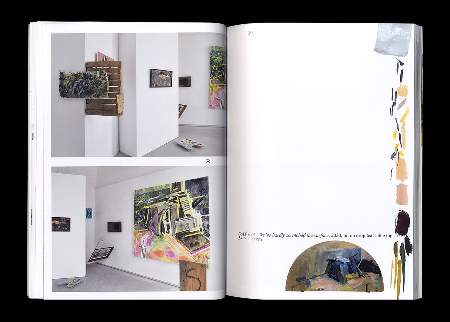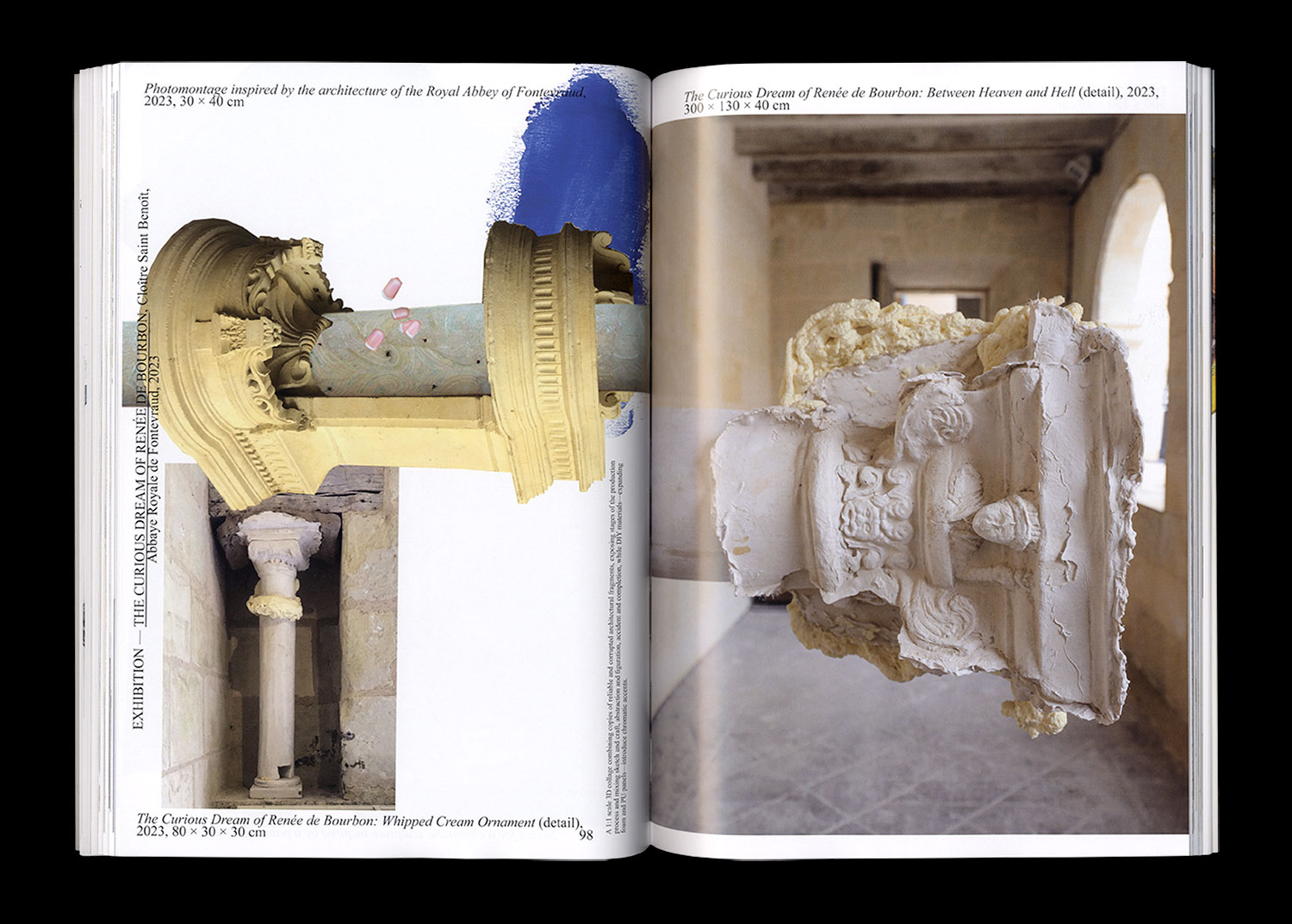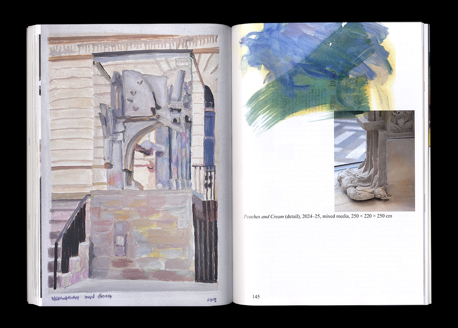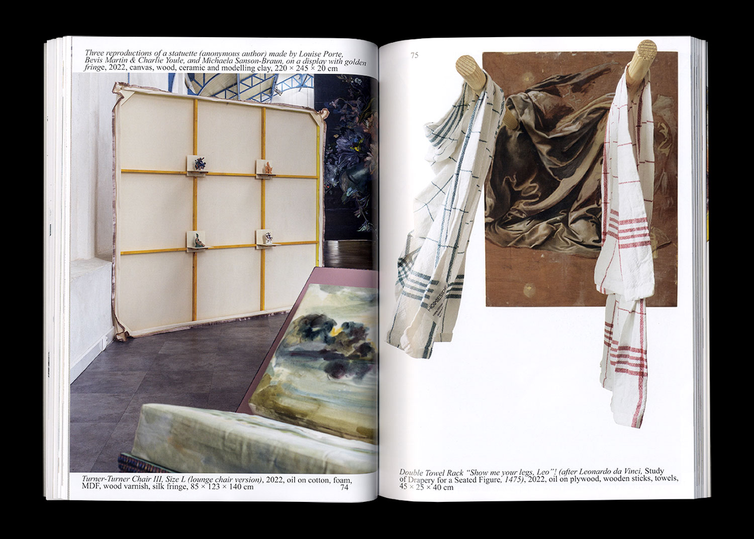 This book, the first dedicated to the work of Michaela Sanson-Braun, traces thirty years of practice across Germany, London, and France. Bringing together paintings, drawings, collages, sculptures and installations, it also features sixteen paintings conceived especially for this publication and printed on uncoated paper. Like a Russian doll, they create a mise en abyme of the book’s own making, blurring the line between documentation and artwork.